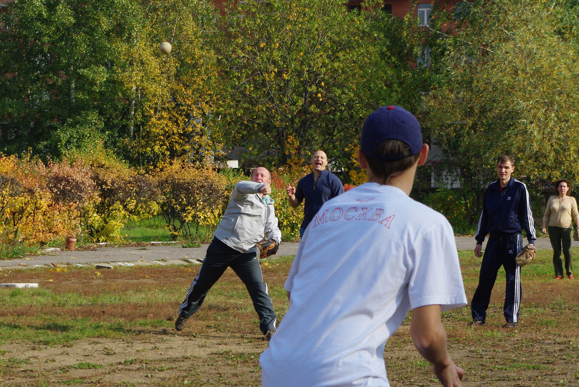 интерес с обеих сторон. После игры родители соревновались в отбивании мяча